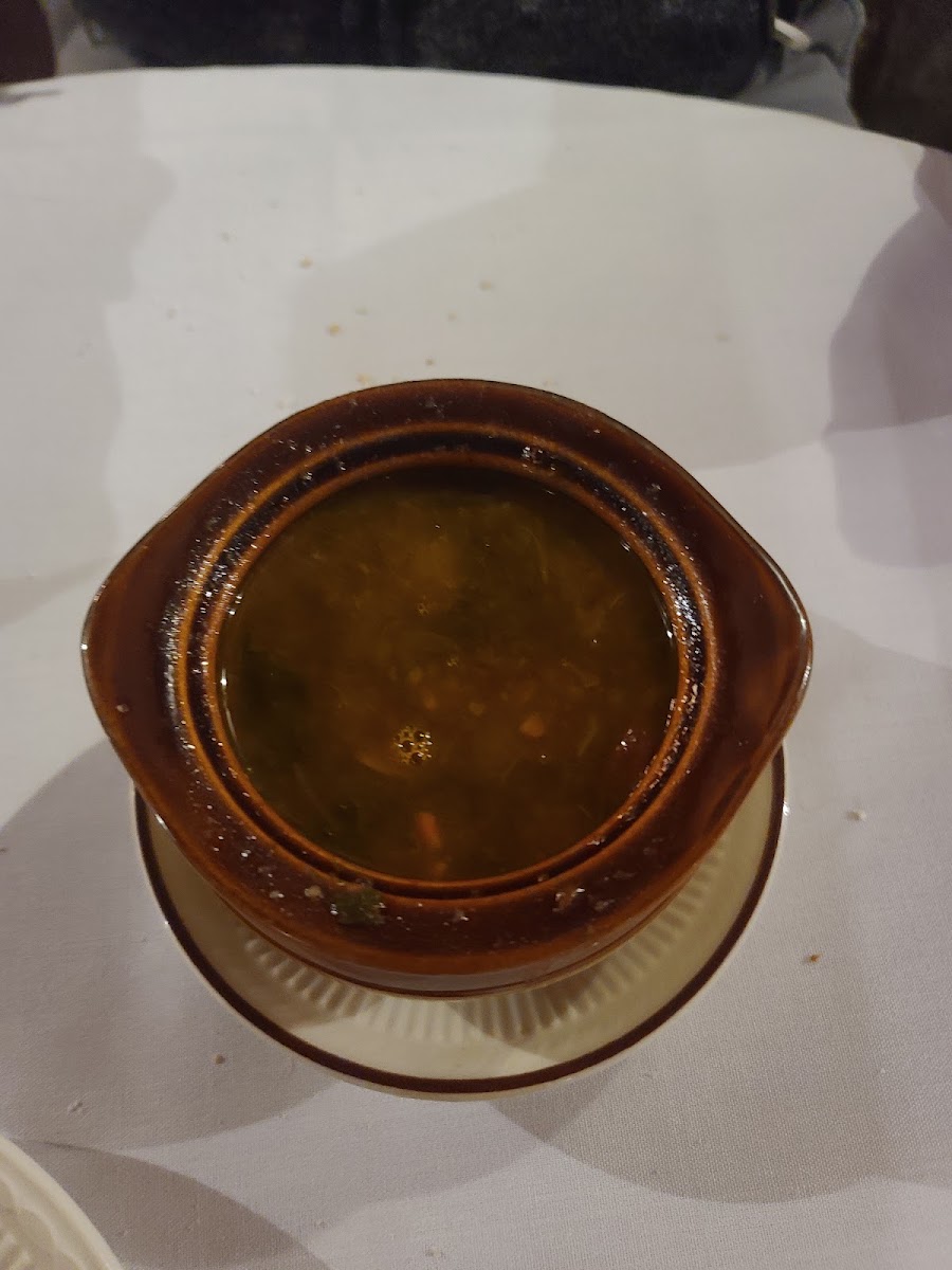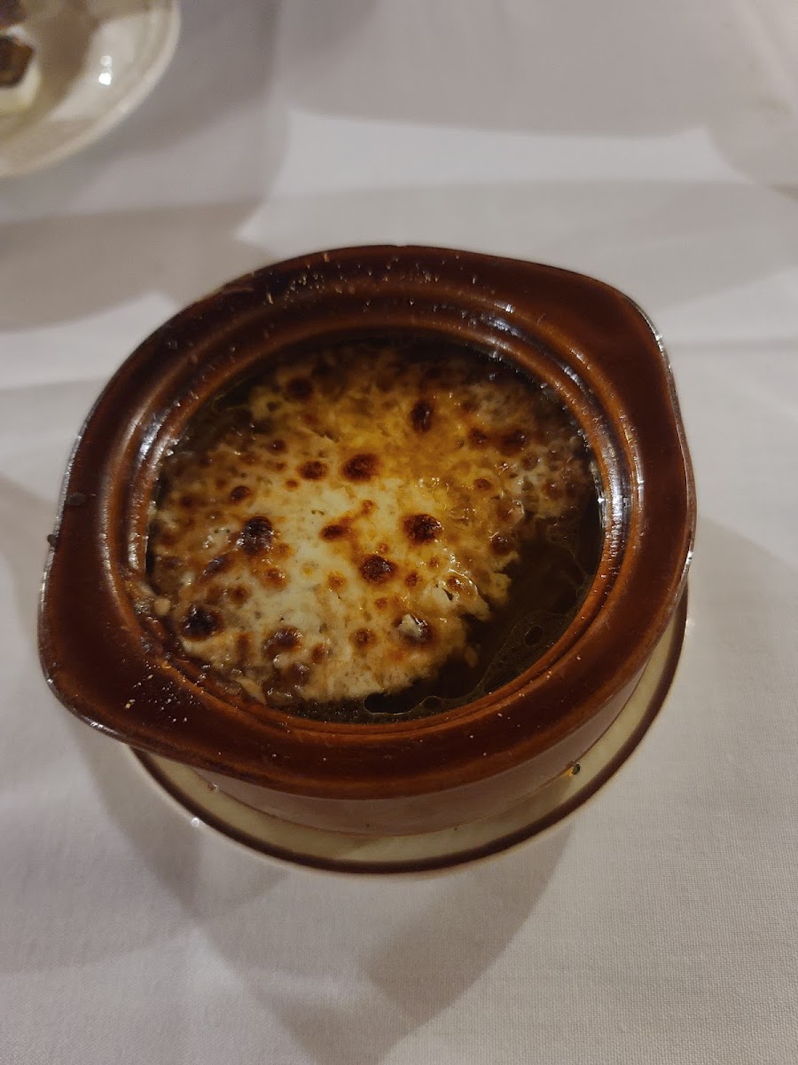 Very good food. I was sitting next to a window and was freezing. The table was a little rickety. Our server was awesome. I had the pizza which was a full-sized pizza and yummy. The others had the onion soup and the angry pasta. They loved it. I had a spoonful of the soup and it was divine!!